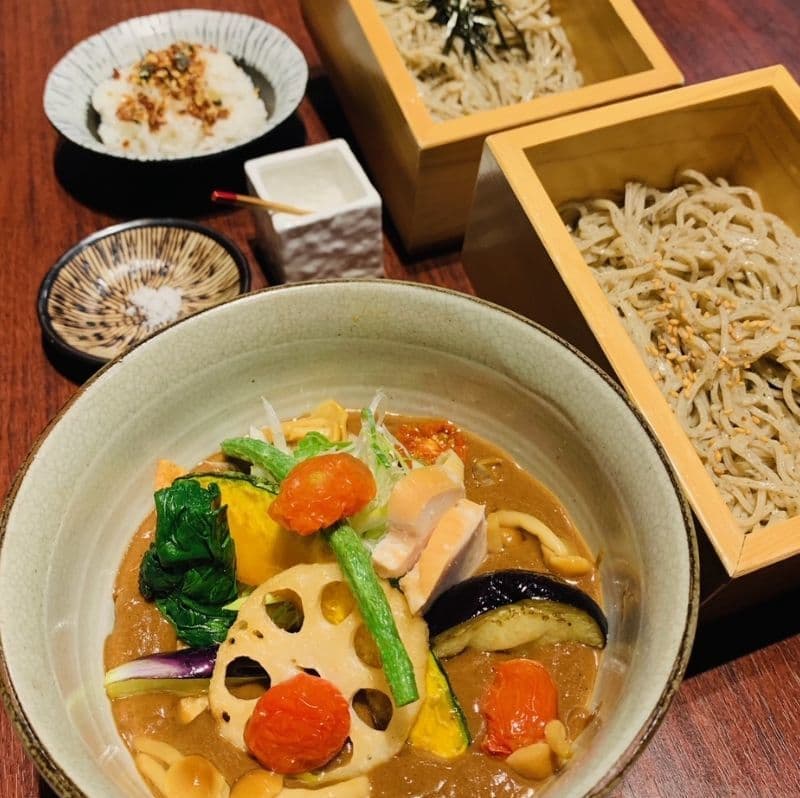 十割蕎麦の“香り”とカレーの“コク”。〆に蕎麦湯でスープカレーに。ご飯(小)付き
